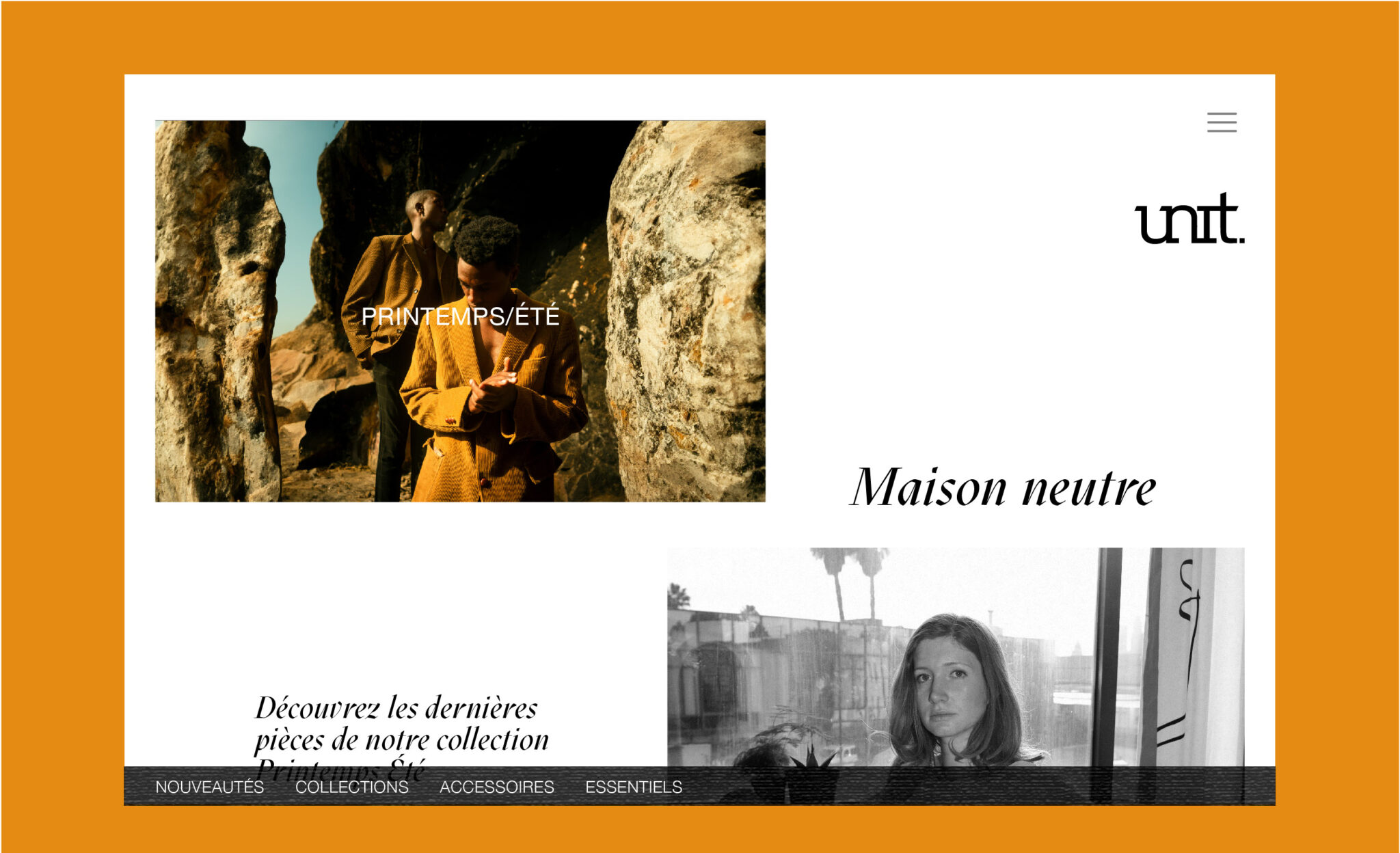 Création d’une gamme de vêtements unisexe, aux lignes épurées et aux tons neutres. La marque Unit se distingue par son univers chaleureux et élégant à la fois.